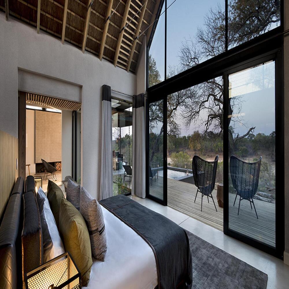 Lion Sands Ivory Lodge is a masterpiece of contemporary design and African elegance, seamlessly blending into its natural surroundings while offering modern comforts and amenities. Surrounded by pristine bushveld and teeming with wildlife, the lodge provides an exclusive retreat for those seeking an authentic safari adventure with a touch of luxury.